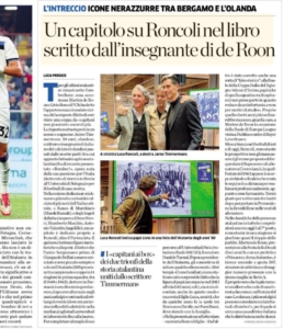 Kop: “Een hoofdstuk over Roncoli in het boek van de docent van De Roon”. Roncoli is Livio Roncoli, de historische aanvoerder van Atalanta Bergamo (enkele jaren geleden overleden) in de jaren zestig en zelf bergamasco. De Roon is Marten de Roon, de huidige aanvoerder. Nederlander en inmiddels import-bergamasco. En zo is Nederland de link tussen de twee iconische aanvoerder van de voetbalclub Atalanta Bergamasca, recorchouders wat betreft het aantal gespeelde duels voor La Dea, zoals de bijnaam van de club luidt.